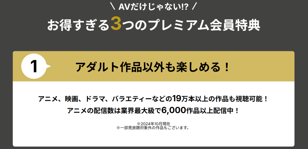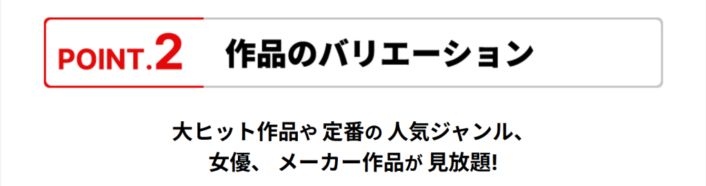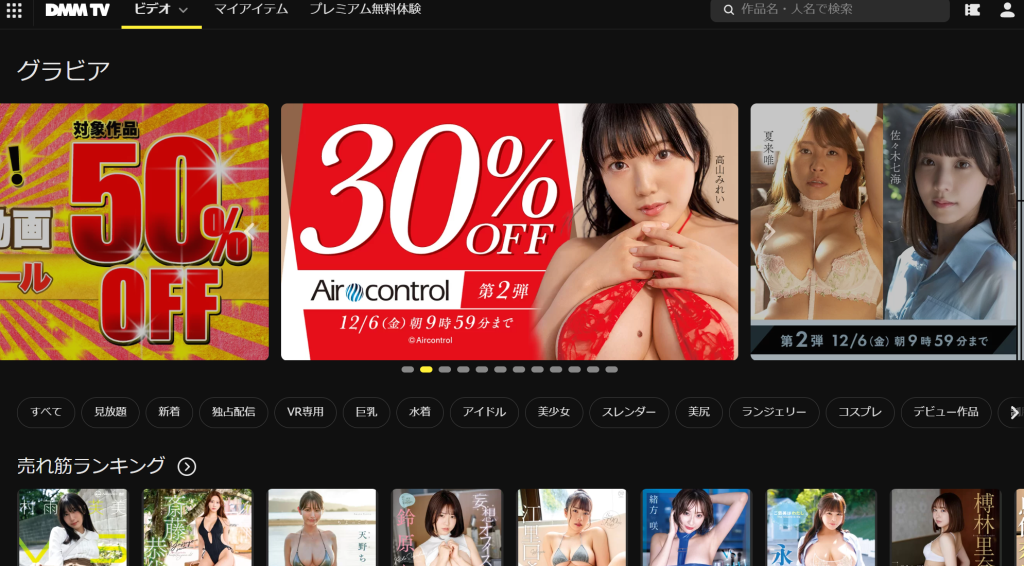 特筆が、グラビアとFANZA TVのアダルト作品。月額550円でほんとにこんだけ見れるの、とゆうぐらい、大量の作品がみれる。FANZA TVは一定間隔で一部作品が入れ替わるので、1か月ではとても見切れない。
