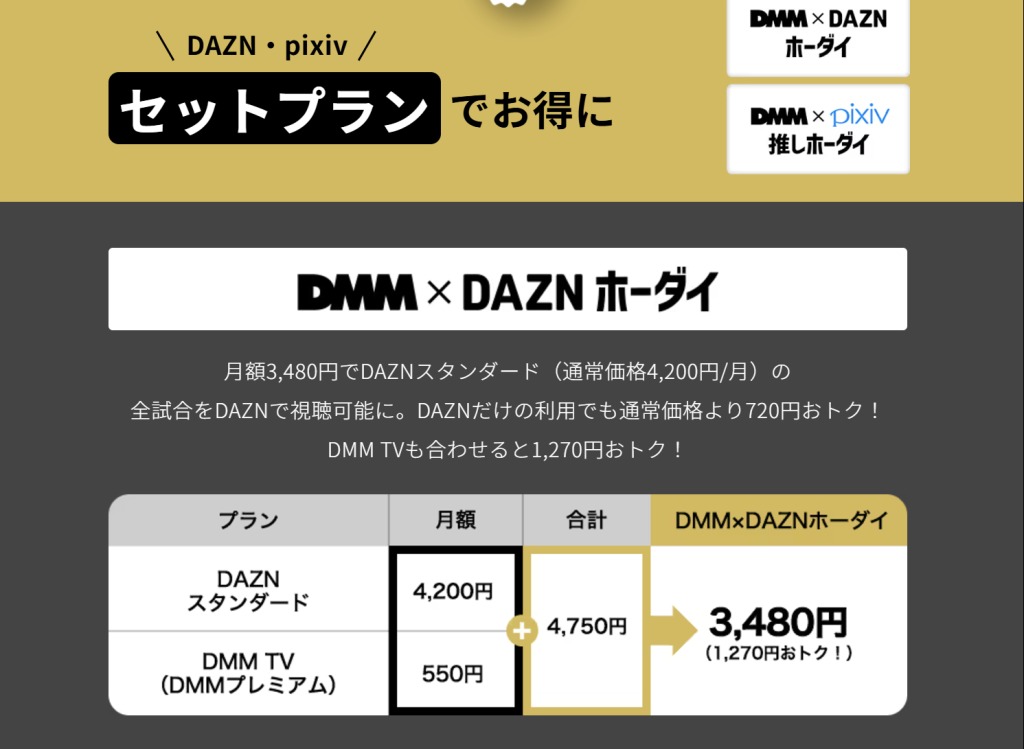 DAZNやPIXIVに興味のある人は、上記のようなお得なプランもある。