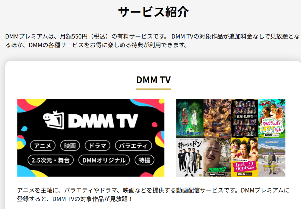 DMMプレミアは、月額550円の有料サービスです。が、このサービス、