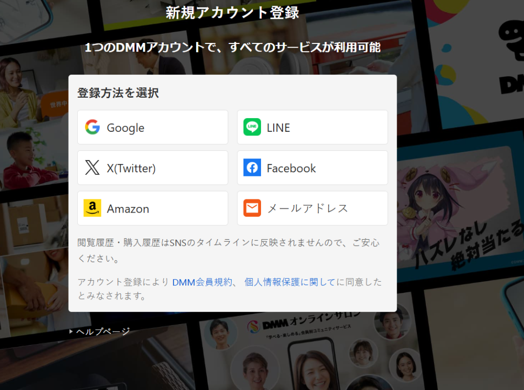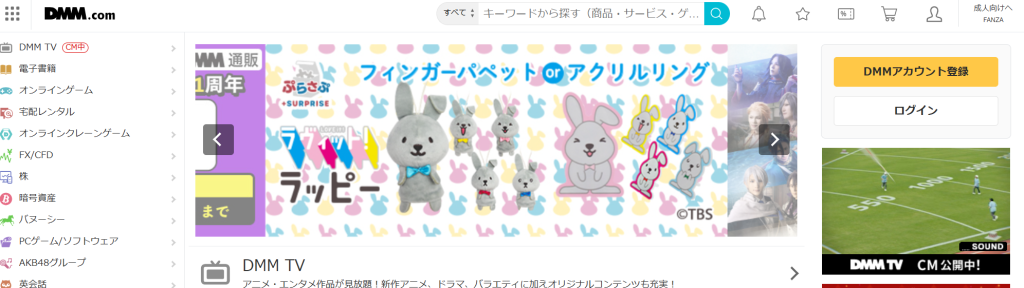 DMMトップページに入り、右上のDMMアカウント登録をクリック。